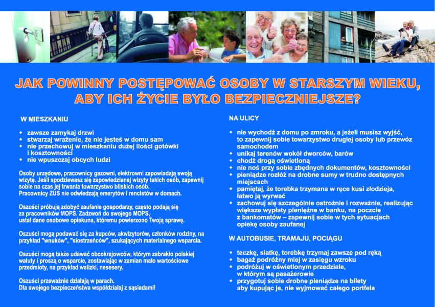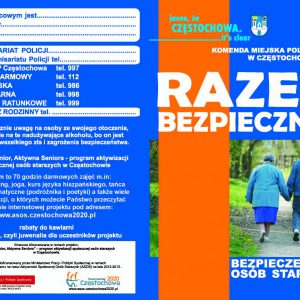 Program Aktywny Senior, Aktywna Seniora to nie tylko zajęcia integrujące lub edukacyjne, ale także działania poprawiające bezpieczeństwo osób starszych w Częstochowie. W grudniu, wspólnie z Urzędem Miasta Częstochowa oraz KMP w Częstochowie przygotowaliśmy 20000 szt ulotek poświęconych temu zagadnieniu.